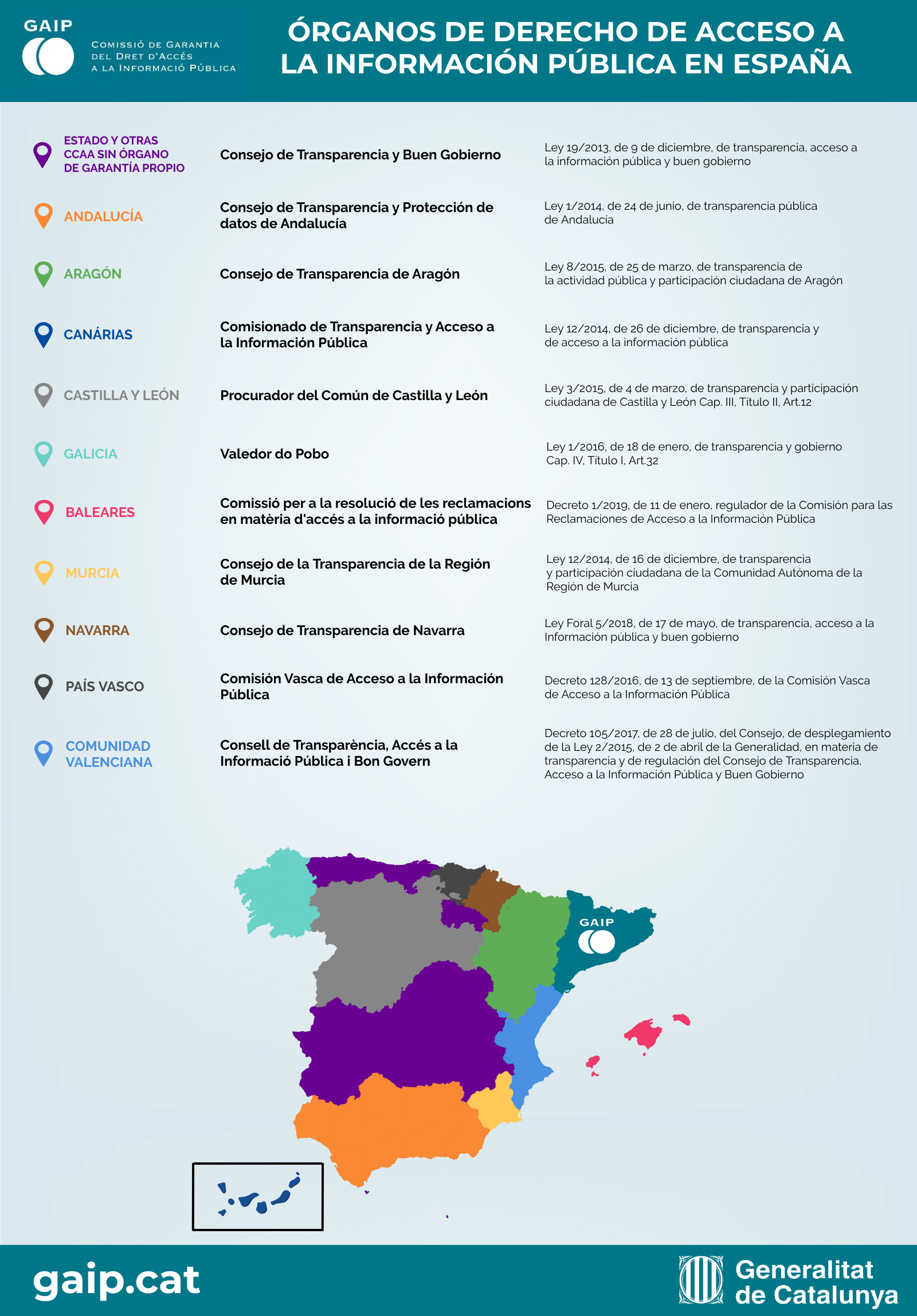 Grupo de trabajo sobre acceso a información pública hace 3 años, 7 mesesEn esta infografía elaborada por la Comisión de Garantías del Derecho de Acceso a la Información Pública de Cataluña quedan representados los diferentes organismos que velan por el cumplimiento del derecho de acceso a la información pública por todo el Estado español, así como la ley que los regula. En concreto, existen 11 organismos autonómic…[Leer más]